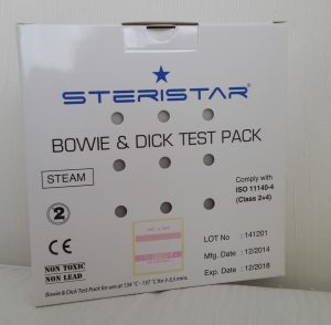 STERISTAR Bowie & Dick Test Paketleri 121°C ve 134°C’de çalışan buharlı sterilizatörlerin günlük takibi içindir. Test paketi kolay açılır bir kutuyla ambalajlanmıştır EN ISO 11140-4’te tanımlanan döngülere sahip sterilizatörlerde çalışmak üzere tasarlanmıştır.