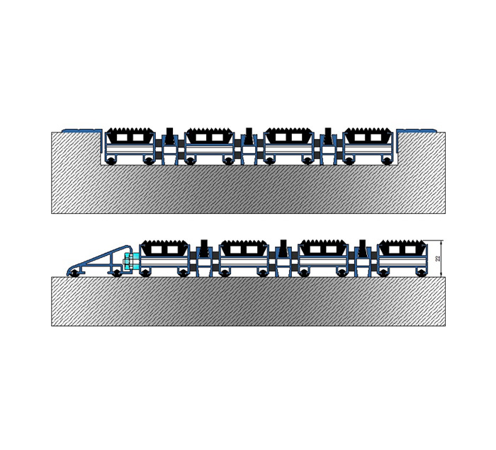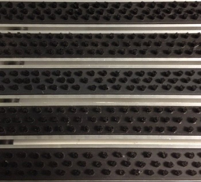 Kauçuk + Alüminyum Sıyırıcılı üst yüzeyli alüminyum gövdeli paspas sistemi. Gömme tip kullanılabildiği gibi, havuz bırakılmayan yerlerde çerçeveli kullanılabilir.